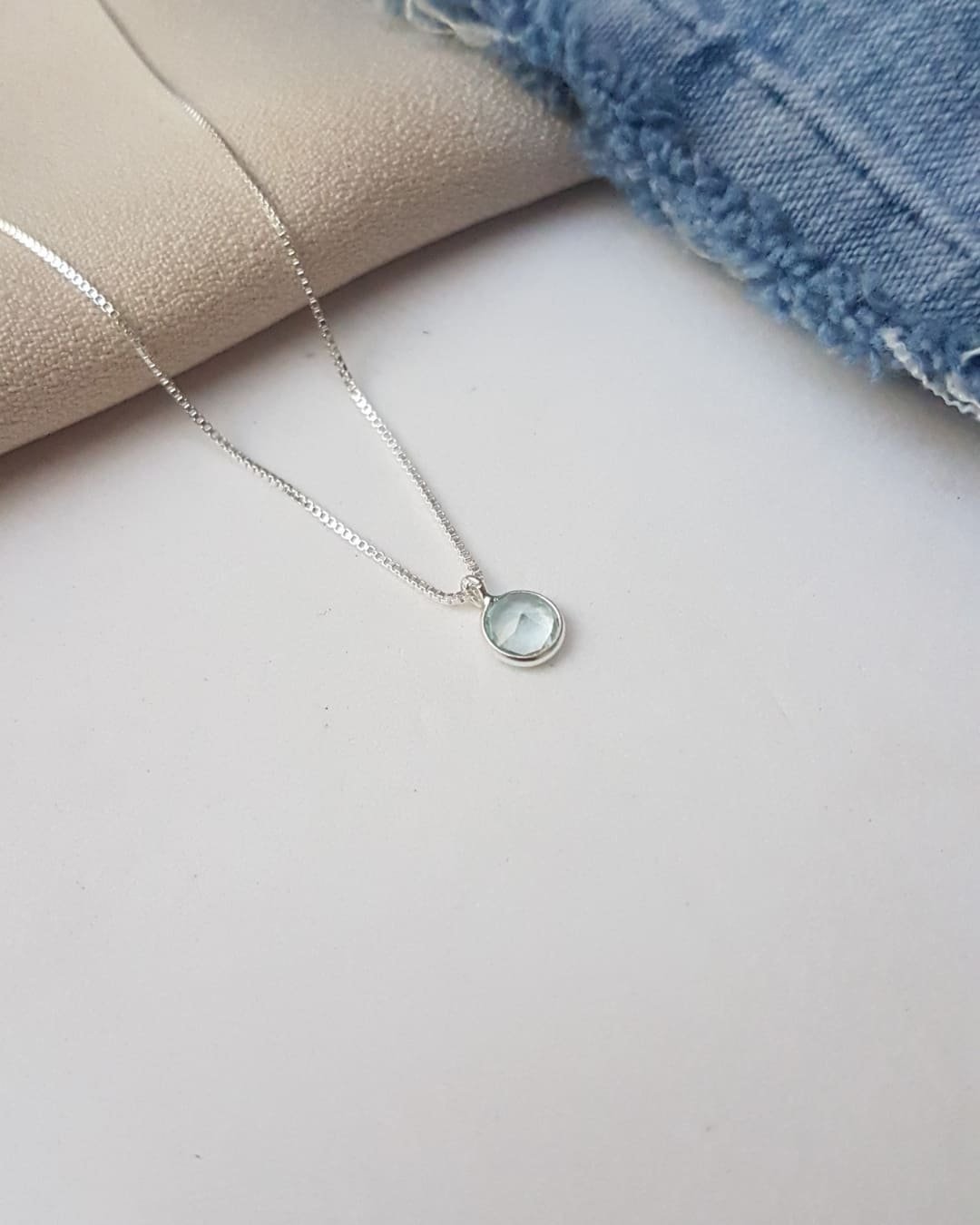 O Colar Pingo de Luz Círculo Azul Claro transmite leveza, calma e delicadeza em cada detalhe. Sua pedra em tom azul suave reflete a tranquilidade das manhãs ensolaradas e o frescor de um dia leve. O formato circular simboliza plenitude e harmonia, trazendo um toque especial que valoriza qualquer produção.