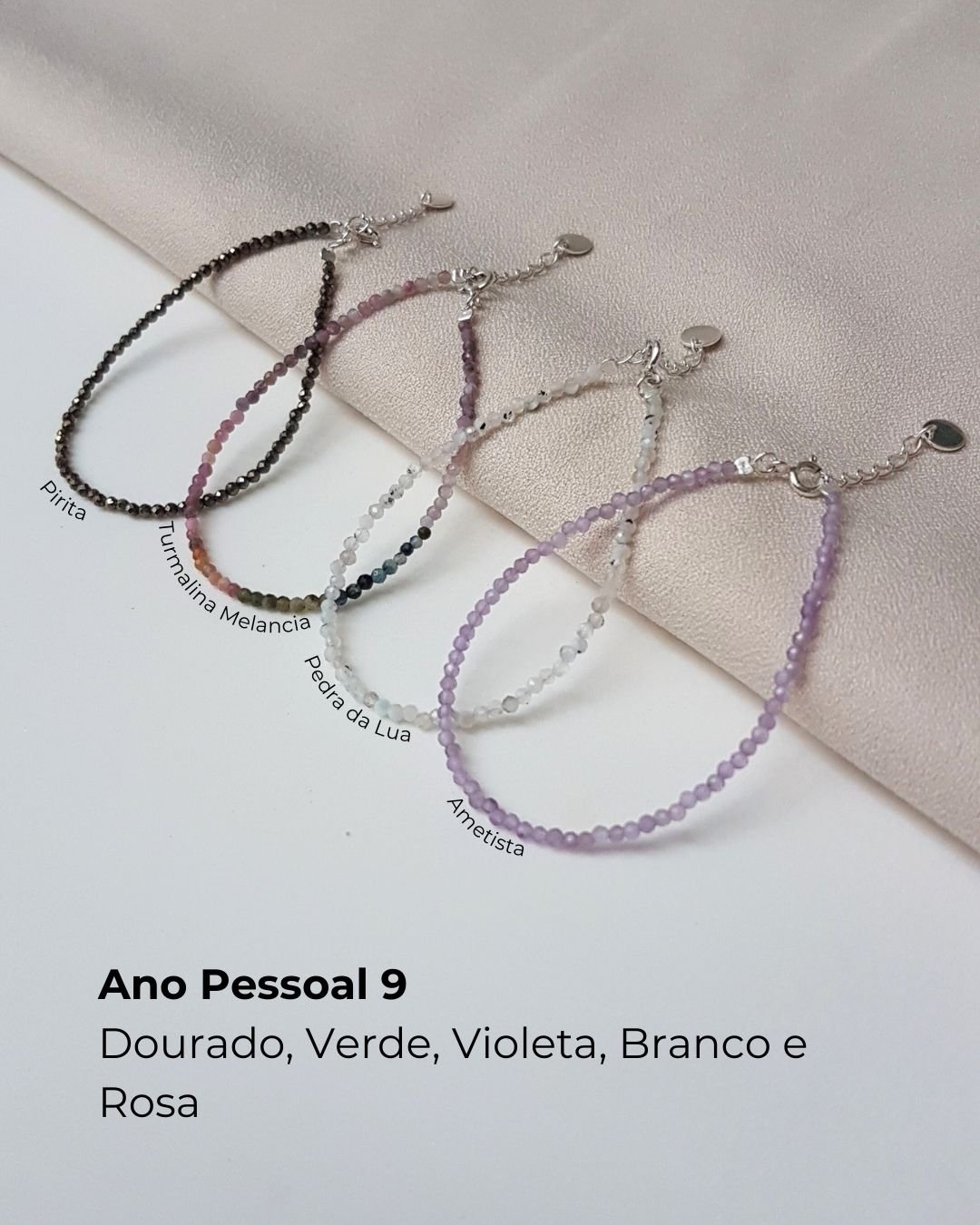 Esse mix de pulseiras é perfeito para você que tem as cores DOURADO, VERDE, BRANCO, VIOLETA E ROSA para arrasar em 2026.