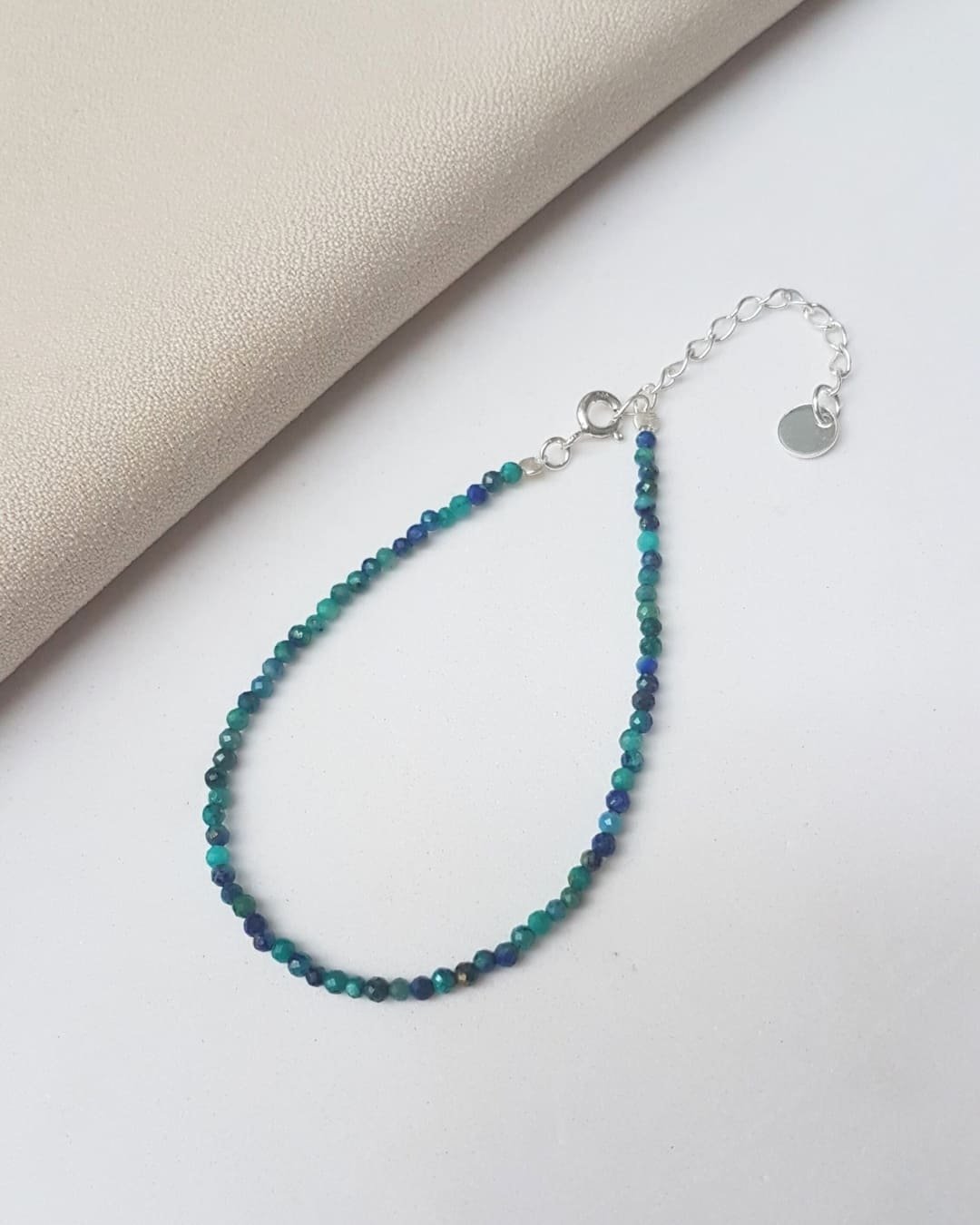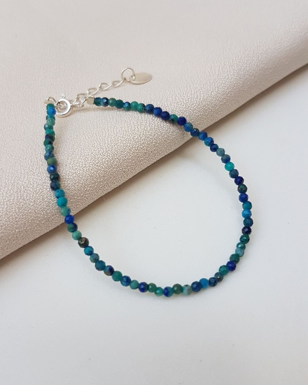 A Pulseira Pedras Crisocola 2mm Lapidada e Prata 925 é um convite à calma e ao equilíbrio interior. Cada pedrinha natural de Crisocola carrega uma energia suave e curativa, conhecida por dissipar o estresse, aliviar a ansiedade e restaurar a paz emocional. Uma pulseira que conecta corpo, mente e espírito, trazendo serenidade em meio à rotina.
