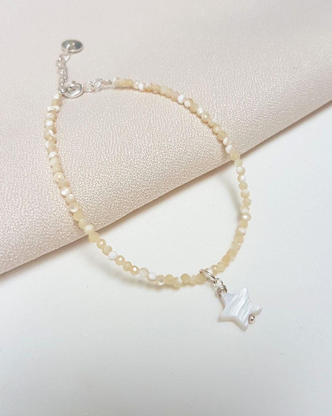 Delicada na medida certa, a Pulseira de Madrepérola Lapidada 2mm com Estrela em Prata 925 traduz a essência da Djuna Joias: leveza, significado e beleza atemporal para mulheres que valorizam detalhes com propósito. As pedras naturais de madrepérola, com brilho suave e lapidação refinada, criam um visual clean e feminino que combina com qualquer momento do dia. O charme fica por conta da estrela em madrepérola, símbolo de proteção, direção e conexão com a própria luz interior.